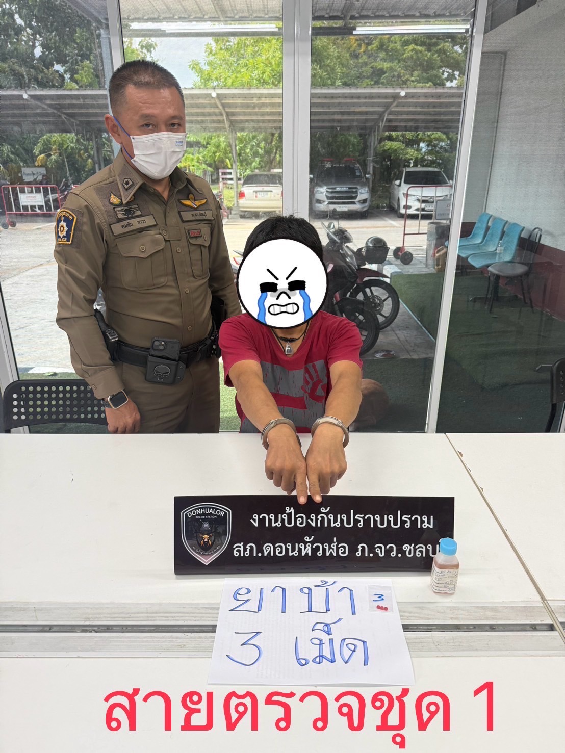 สภ.ดอนหัวฬ่อ จับกุมชายวัย 32 ปี พร้อมยาบ้า 3 เม็ด ดำเนินคดีตามกฎหมาย