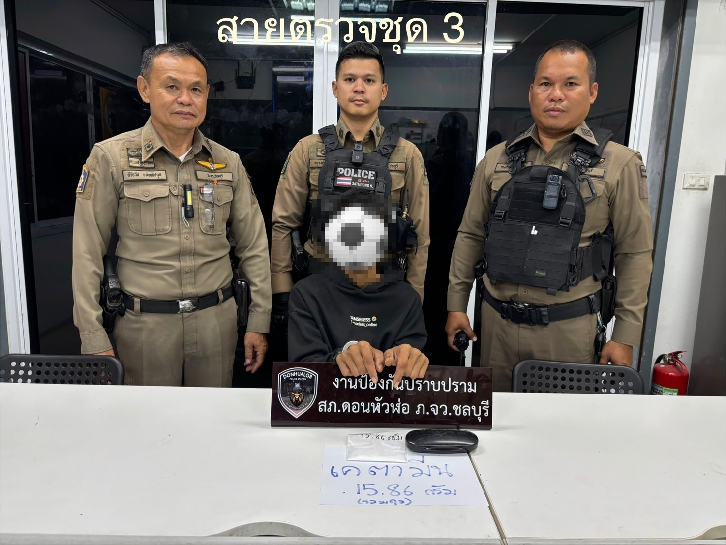 สภ.ดอนหัวฬ่อ จับกุมผู้ต้องหาพร้อมของกลางเคตามีน 15 กรัม